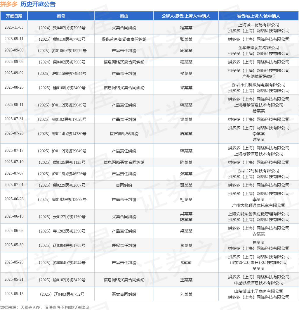 本站消息,根据天眼查APP显示,近日公布了一则拼多多(上海)网络科技有限公司作为被告/被上诉人的开庭公告,详细内容如下: